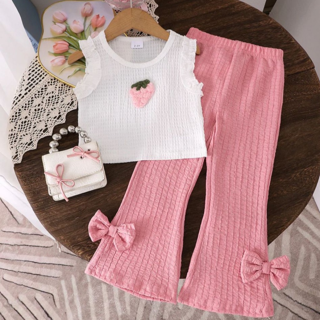 BLUSA FRUTILLITA CON PANTALÓN ROSA T 2-3 AÑOS