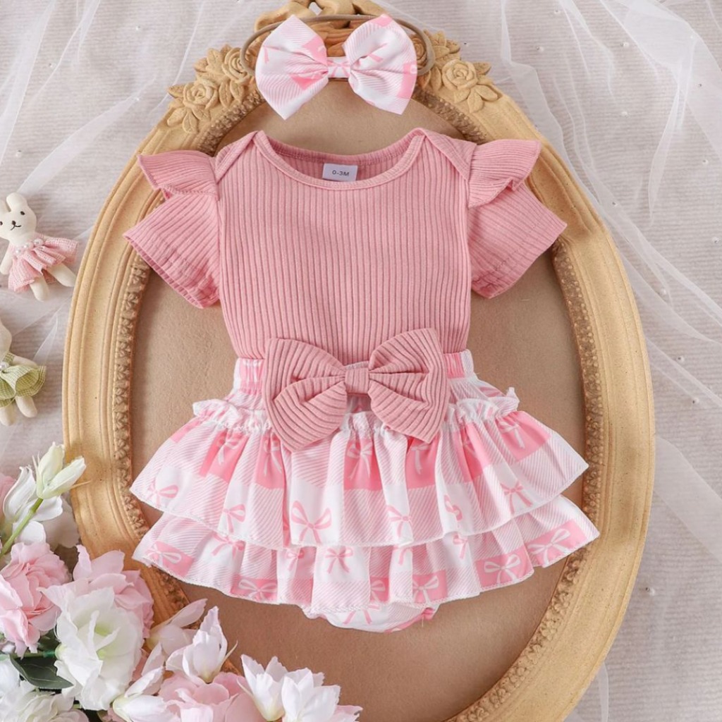 BODY ROSA CON SHORT Y VINCHA T 9-12 MESES