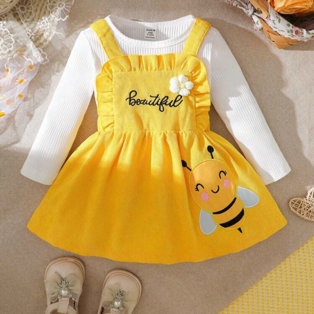 CONJUNTO 2 PIEZAS, VESTIDO ABEJITA Y SUÉTER MANGA LARGA T 18-24 M