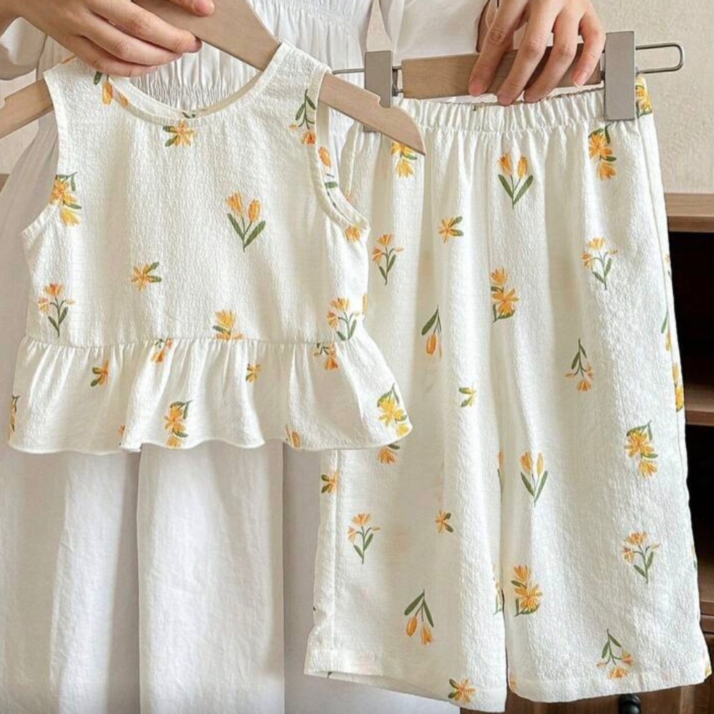 CONJUNTO BLUSA Y PANTALÓN BEIGE FLORES T 6-9 MESES