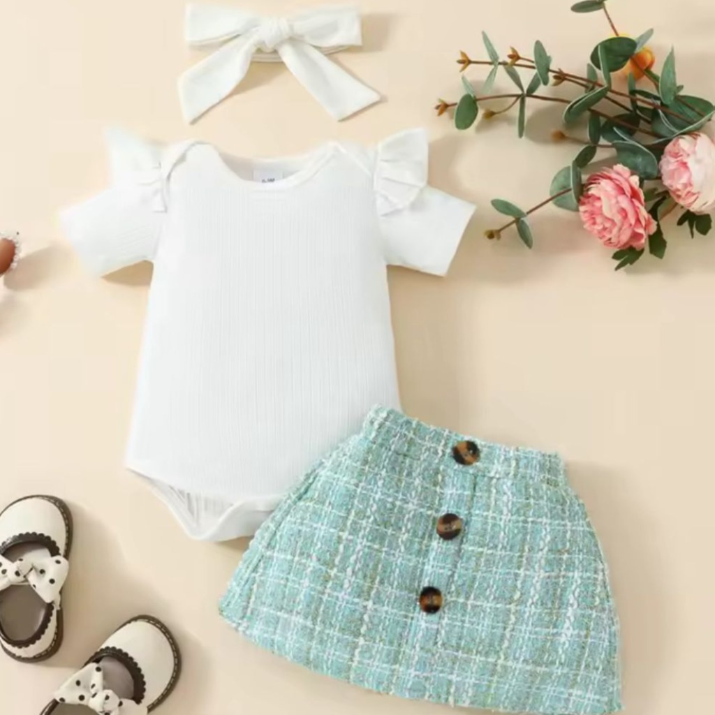 CONJUNTO BLUSA Y POLLERA TURQUESA CON VINCHA T 6-9 MESES