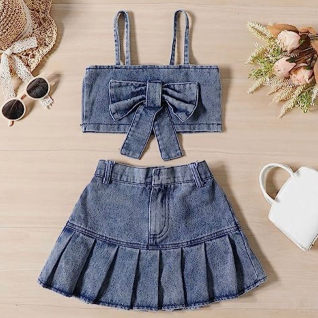 CONJUNTO POLLERA TABLEADA Y CROP TOP T 5 AÑOS
