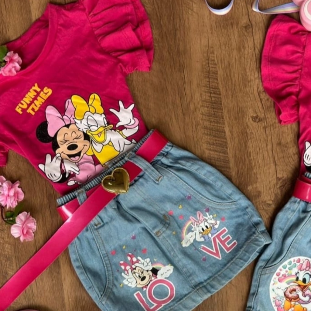 CONJUNTO REMERA FUCSIA, SHORT DE JEANS Y CINTO T 7 AÑOS