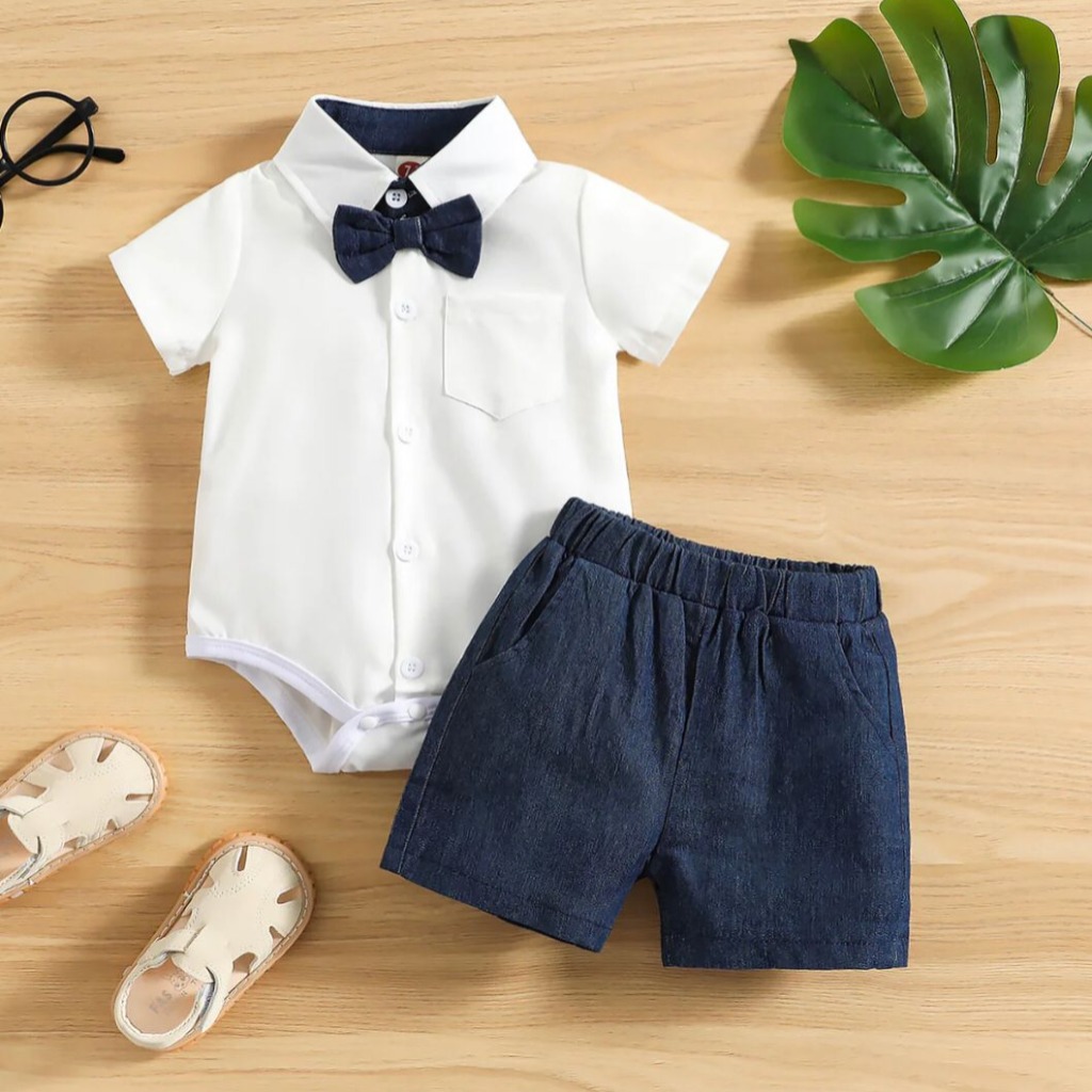 CONJUNTO SHORT CON TIRANTES BODY Y MOÑO T 3-6 MESES