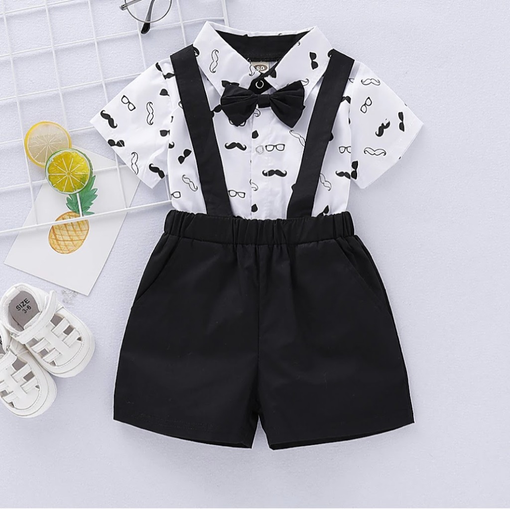 CONJUNTO SHORT CON TIRANTES BODY Y MOÑO T 3-6 MESES