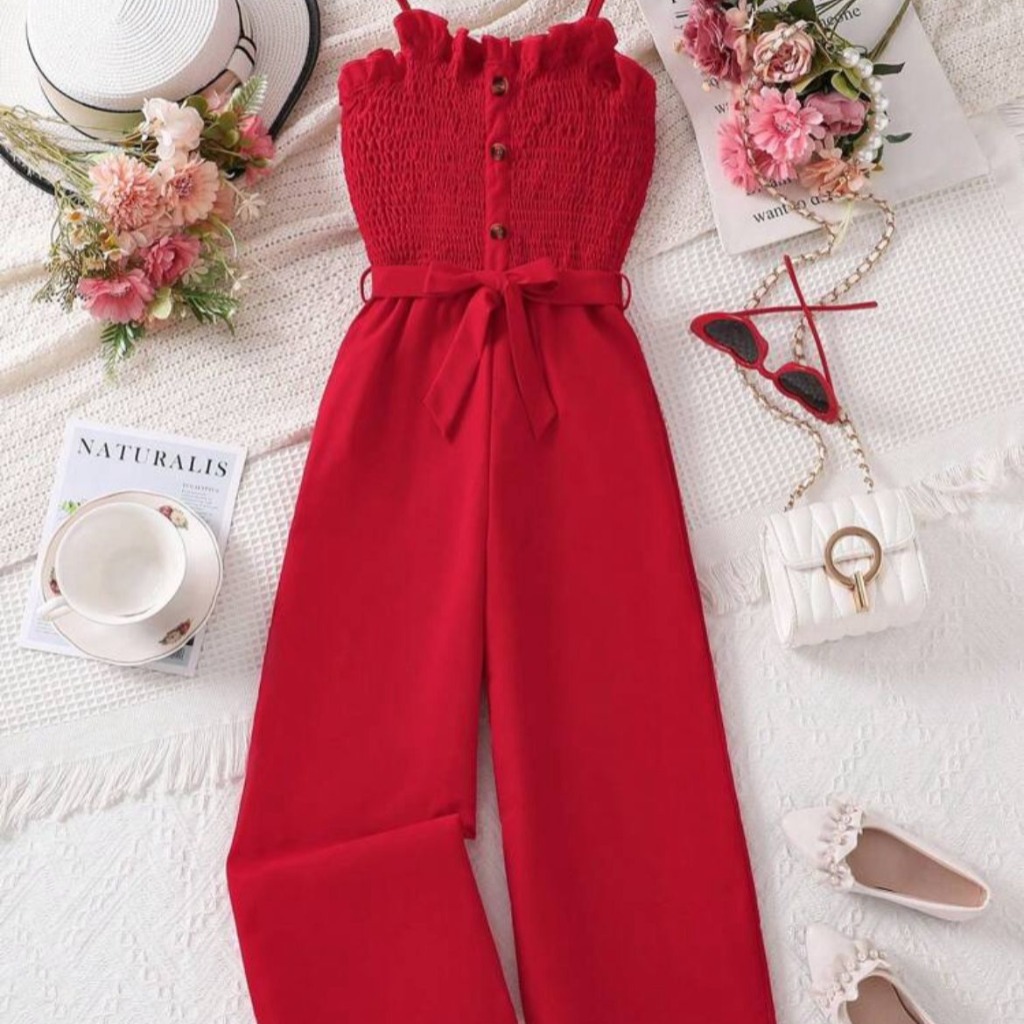 ENTERIZO ROJO CON FRUNCIDO Y CINTO T 10 AÑOS