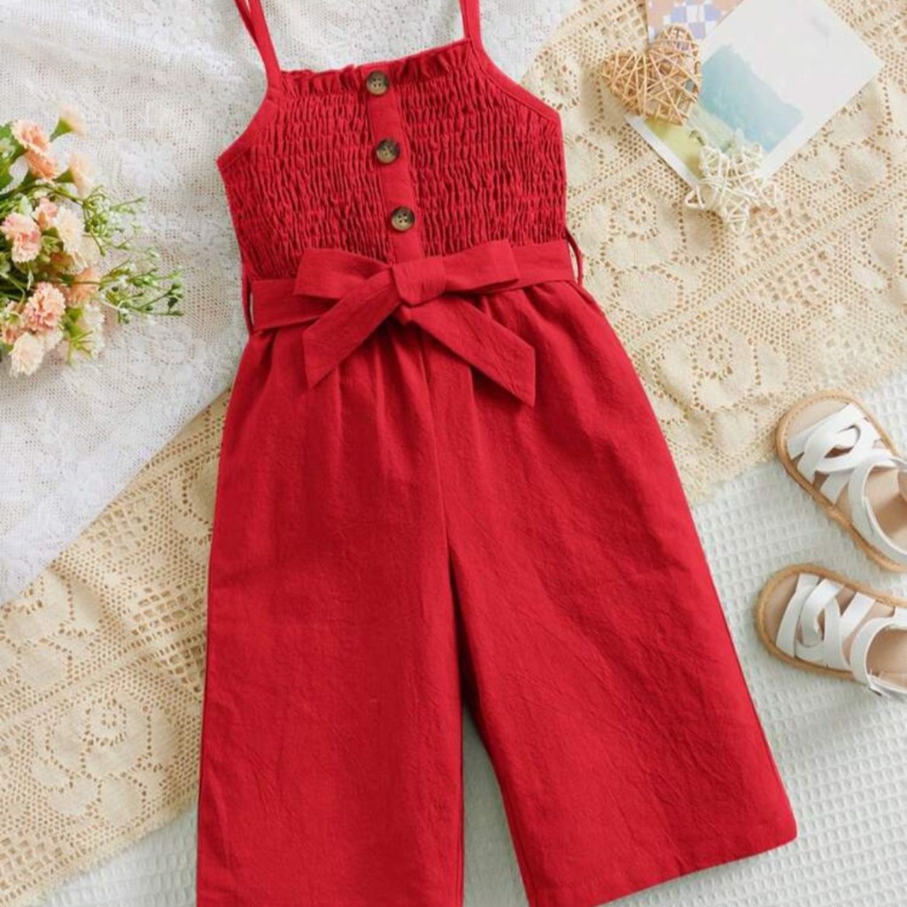 ENTERIZO ROJO FRUNCIDO CON CINTO T 6-9 MESES