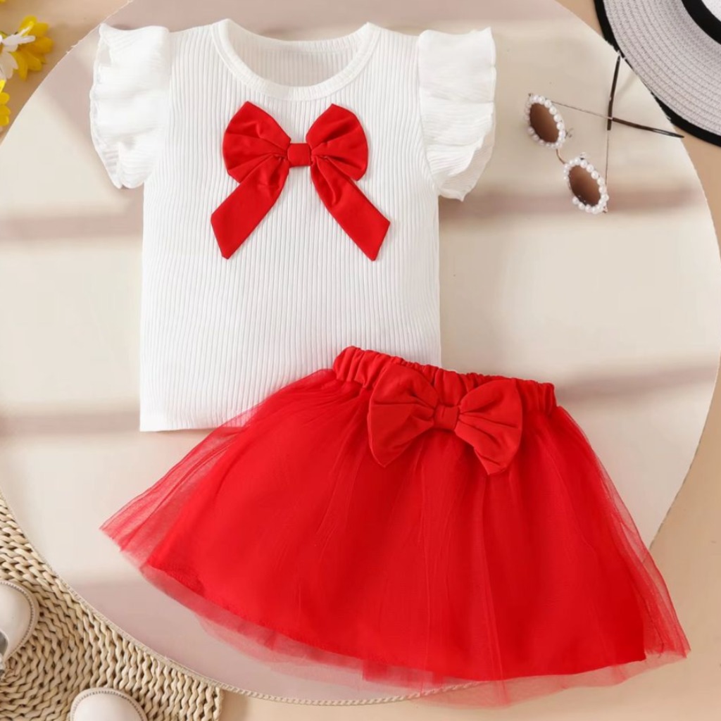 REMERA BLANCA CON MOÑO Y POLLERA TUTU ROJO T 3-4 AÑOS