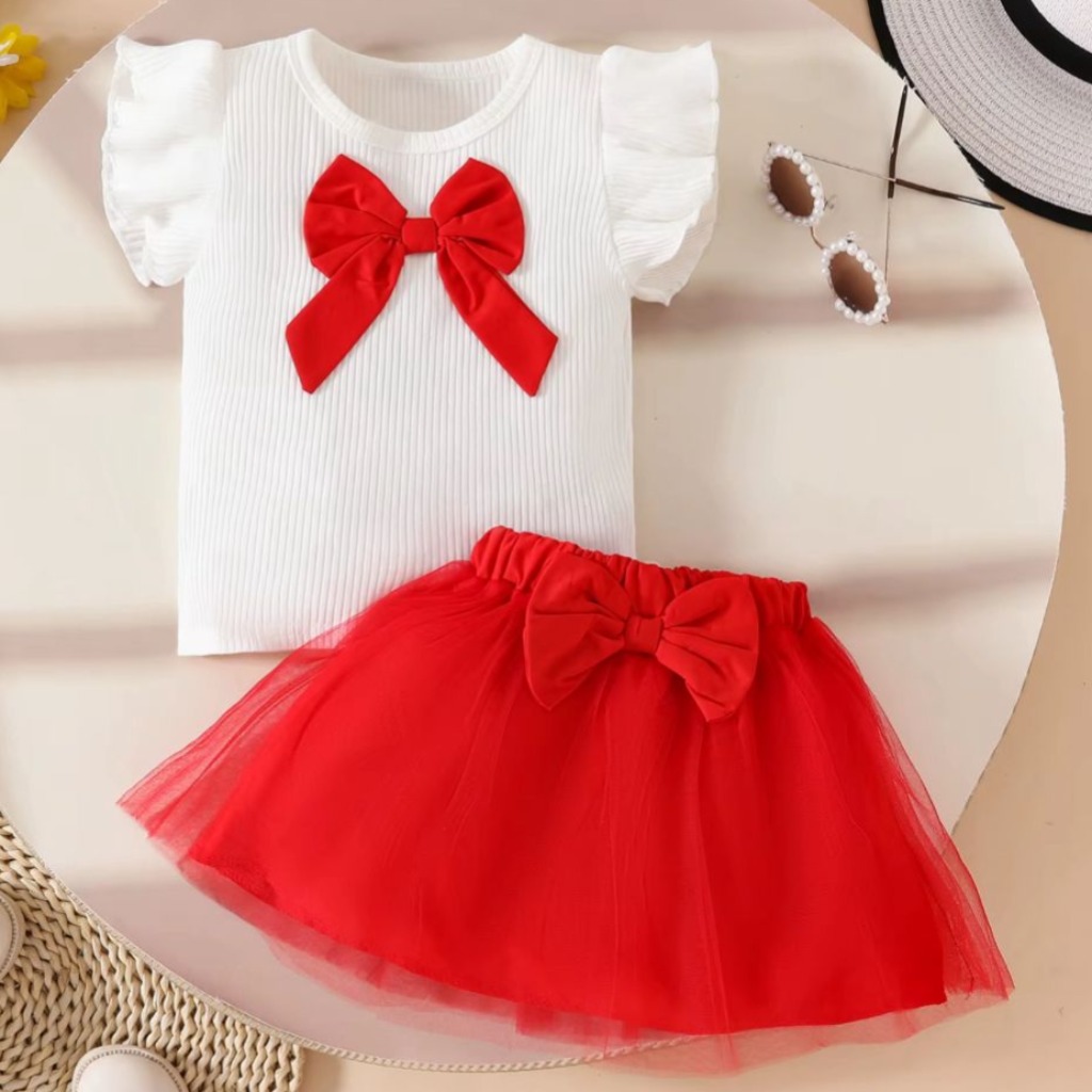 REMERA BLANCA CON MOÑO Y POLLERA TUTU VERDE T 3-4 AÑOS