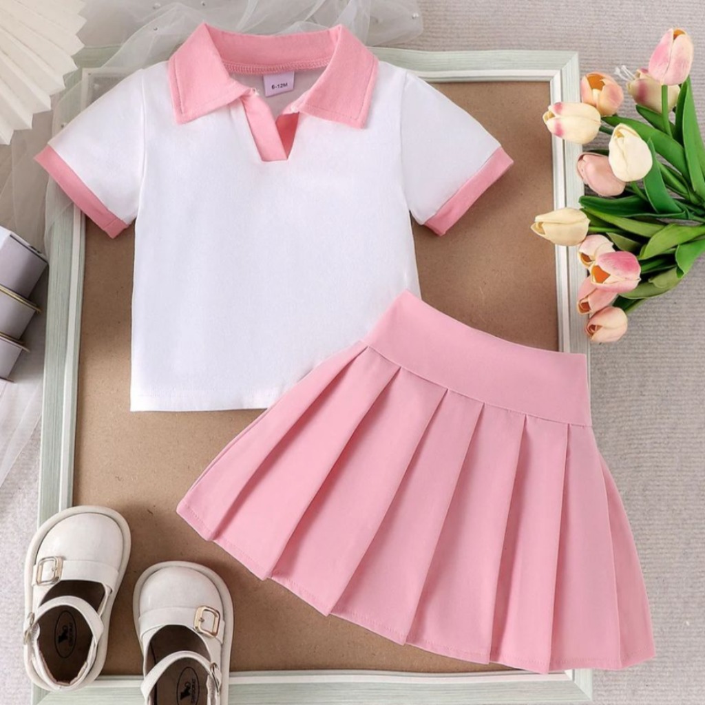 REMERA Y POLLERA TABLEADA ROSA T 9-12 MESES
