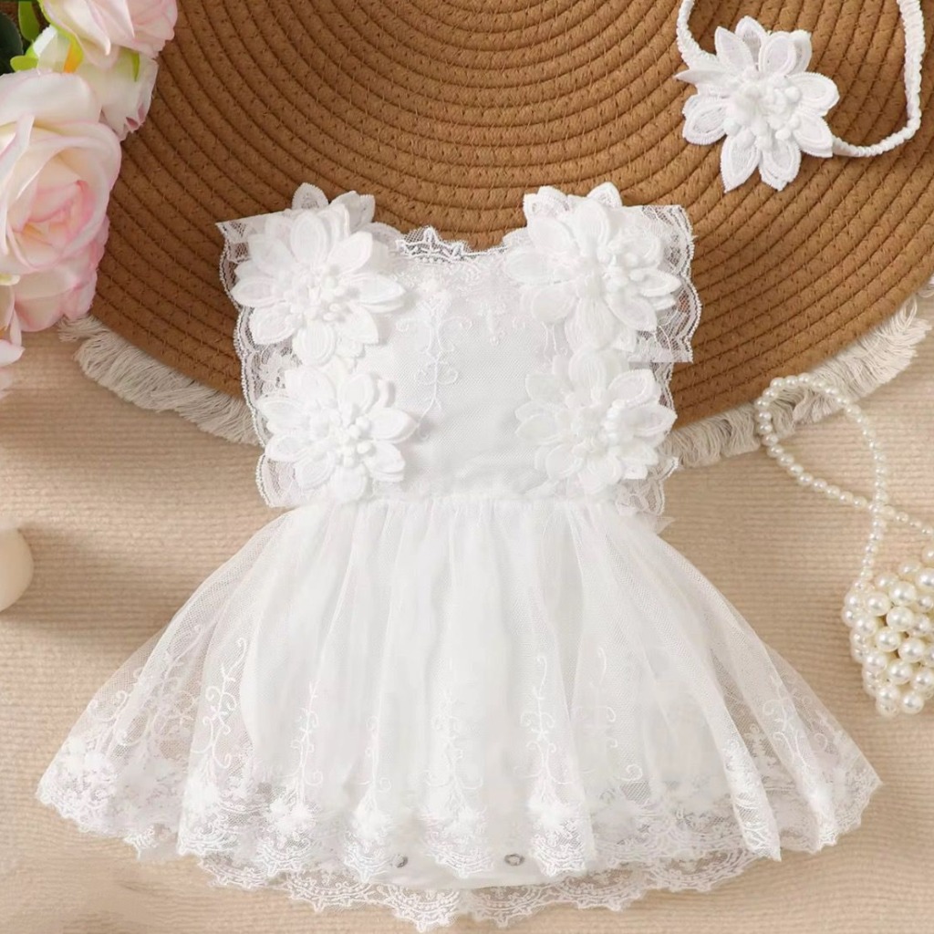 VESTIBODY BLANCO CON FLORES Y VINCHA T 12-18 M