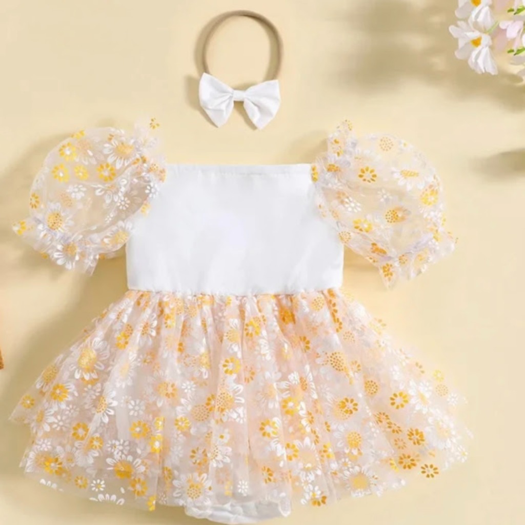VESTIBODY BLANCO CON MARGARITAS CON VINCHA T 3-6M