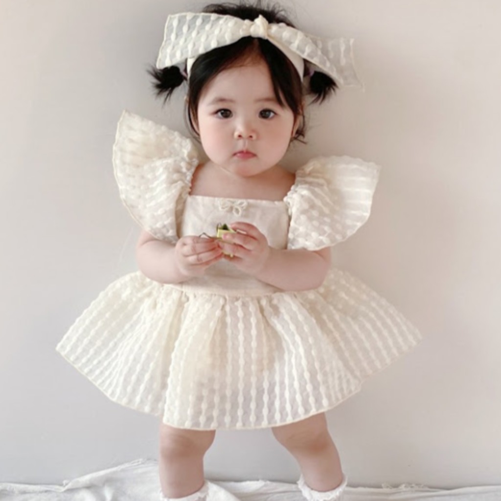 VESTIBODY COLOR CRUDO, MOÑITO PERLITAS CON VINCHA T 12-18 MESES