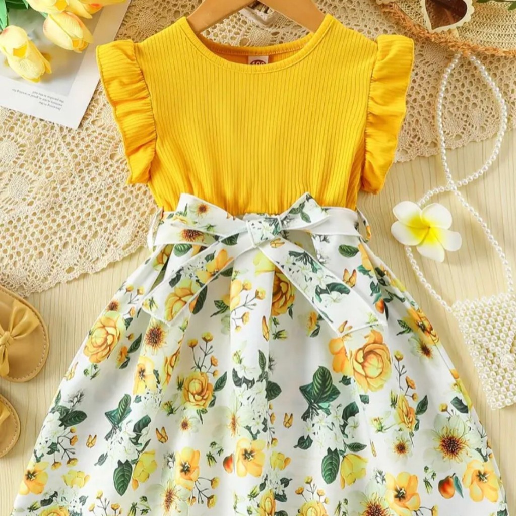 VESTIDO AMARILLO CON FLORES T 12-18 MESES