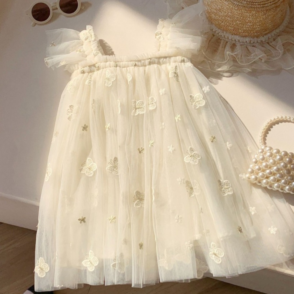 VESTIDO BEIGE CON MARIPOSAS BORDADAS T 5 AÑOS