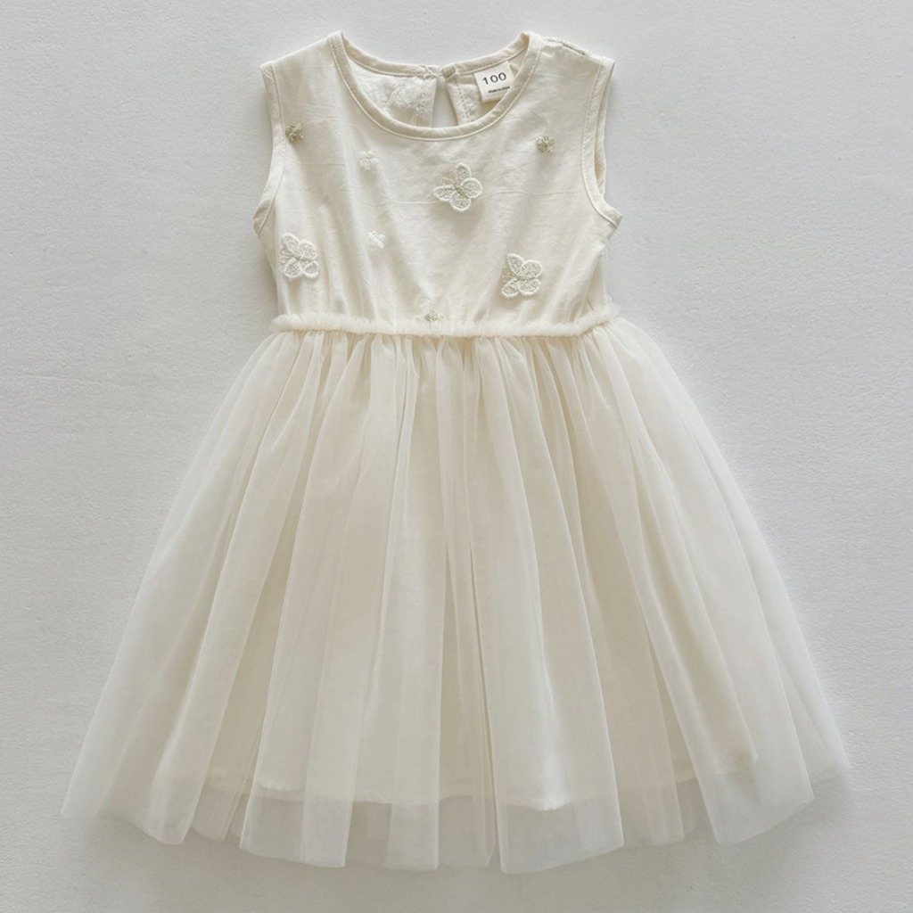 VESTIDO BEIGE CON TUL DETALLES MARIPOSA Y ESTRELLAS T 18-24 MESES