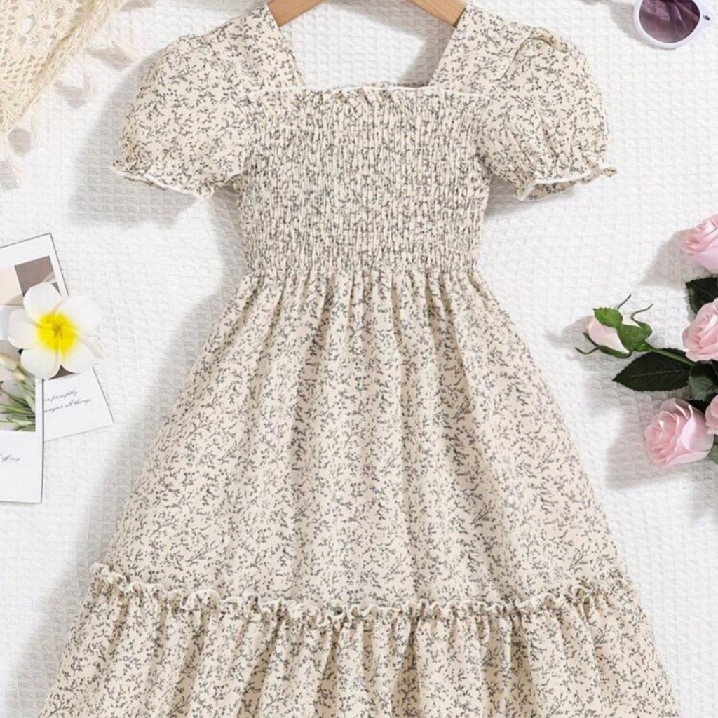 VESTIDO BEIGE FLOREADO CON MANGUITAS T 4 AÑOS