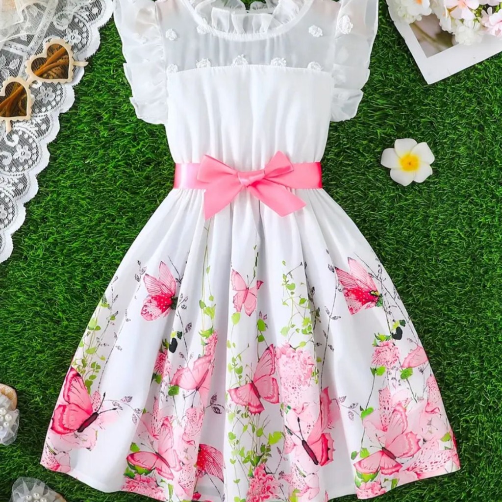 VESTIDO BLANCO CON FALDA ESTAMPADA Y CINTO T 6 AÑOS