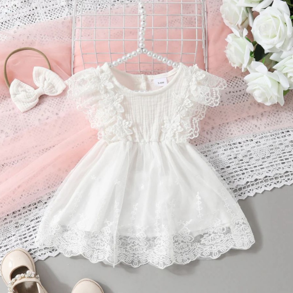 VESTIDO BLANCO CON LAZO PARA VINCHA T 0-3 MESES