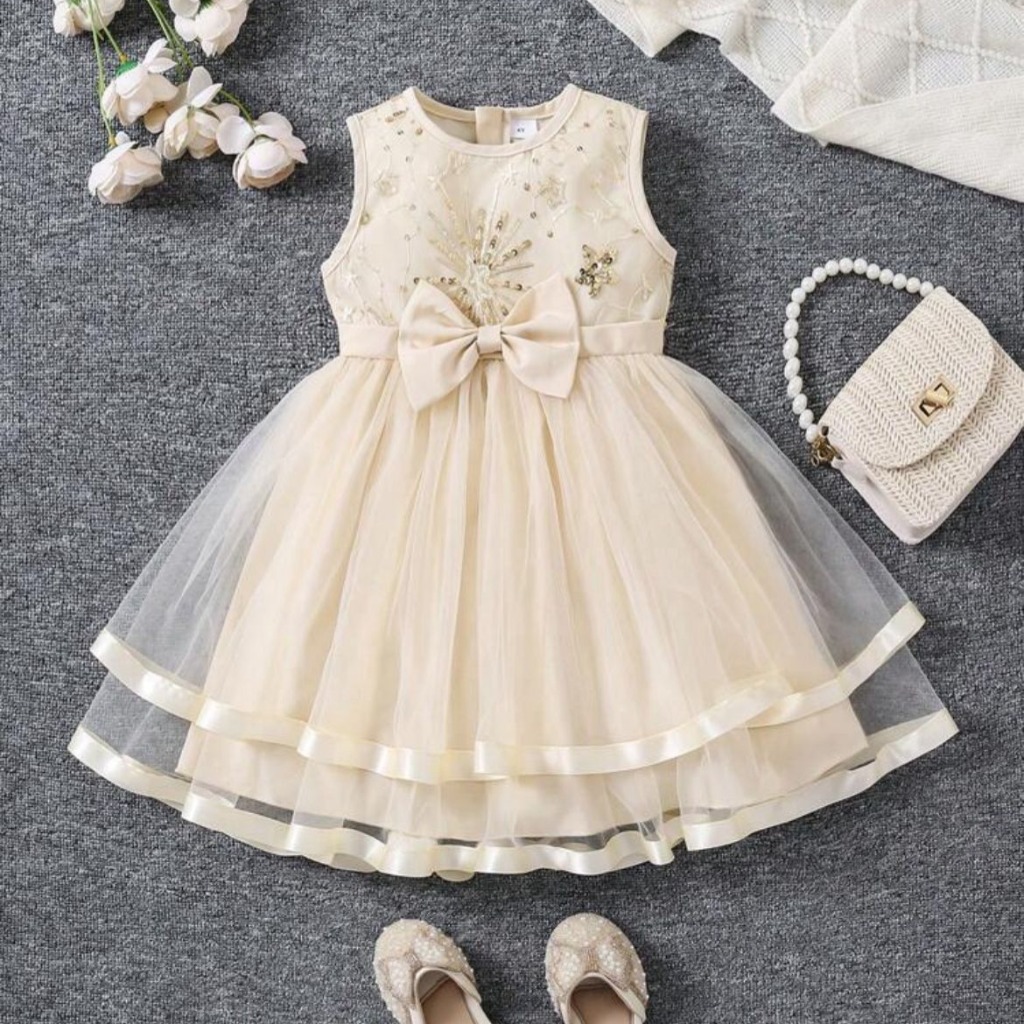 VESTIDO BEIGE DETALLES LENTEJUELAS T 6 AÑOS