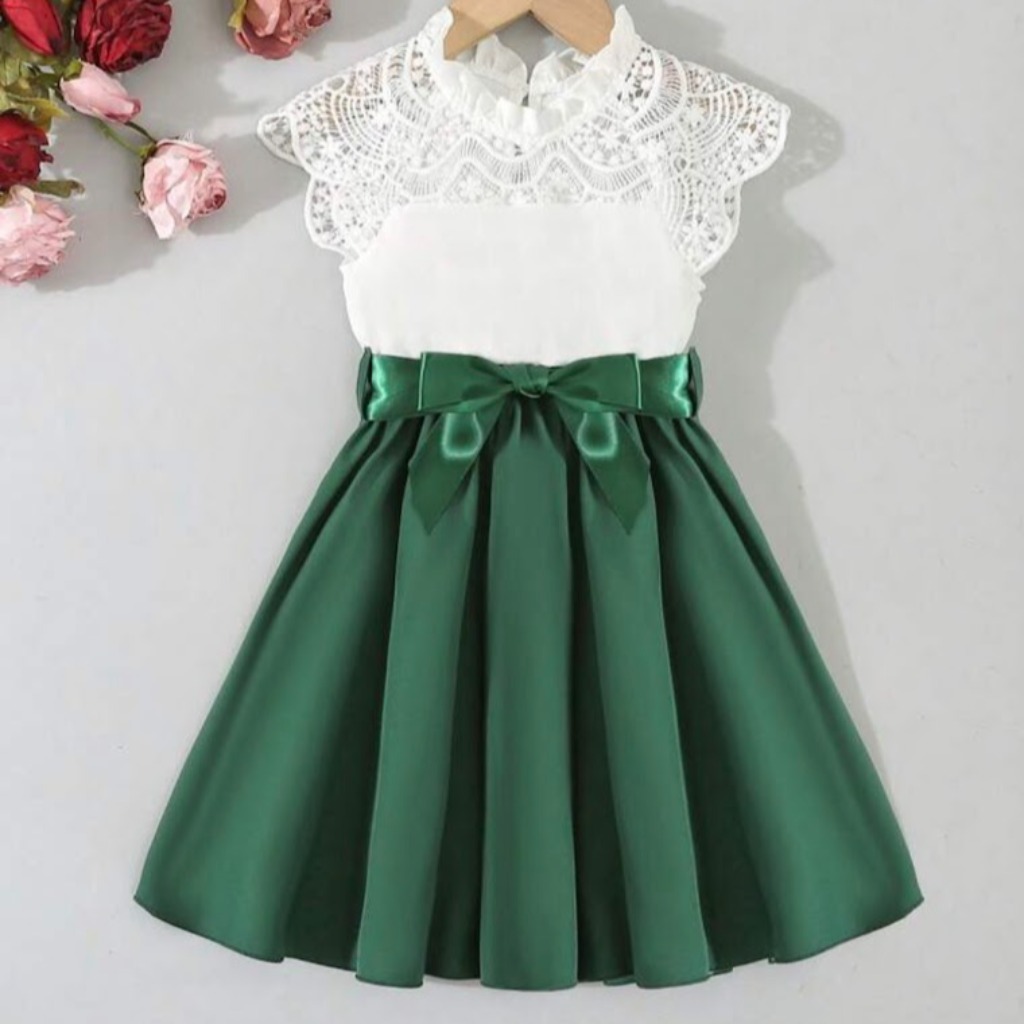 VESTIDO BLANCO Y VERDE CON CINTO T 6 AÑOS