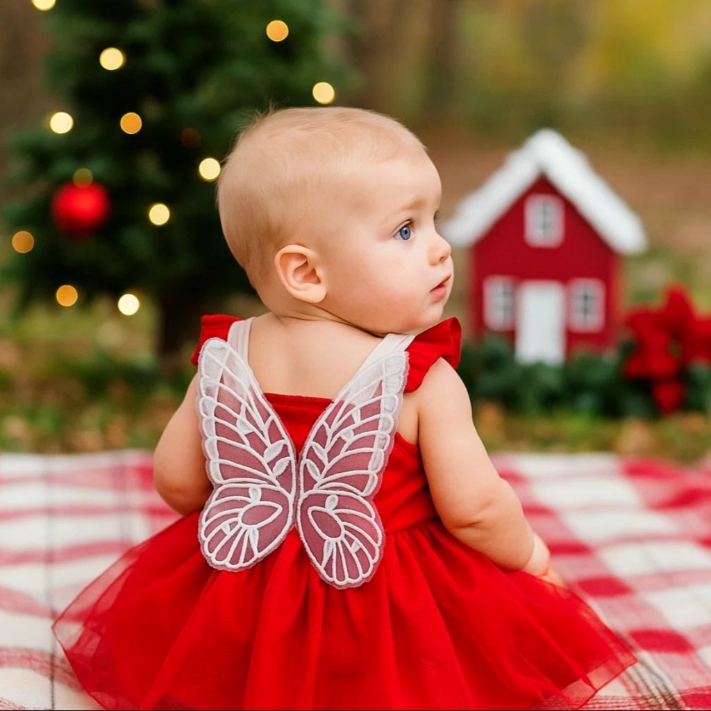 VESTIDO BORDO DETALLE ALAS MARIPOSA ATRAS 12-18 MESES