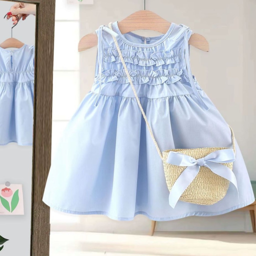 VESTIDO CELESTE CON CARTERITA T 9-12 MESES