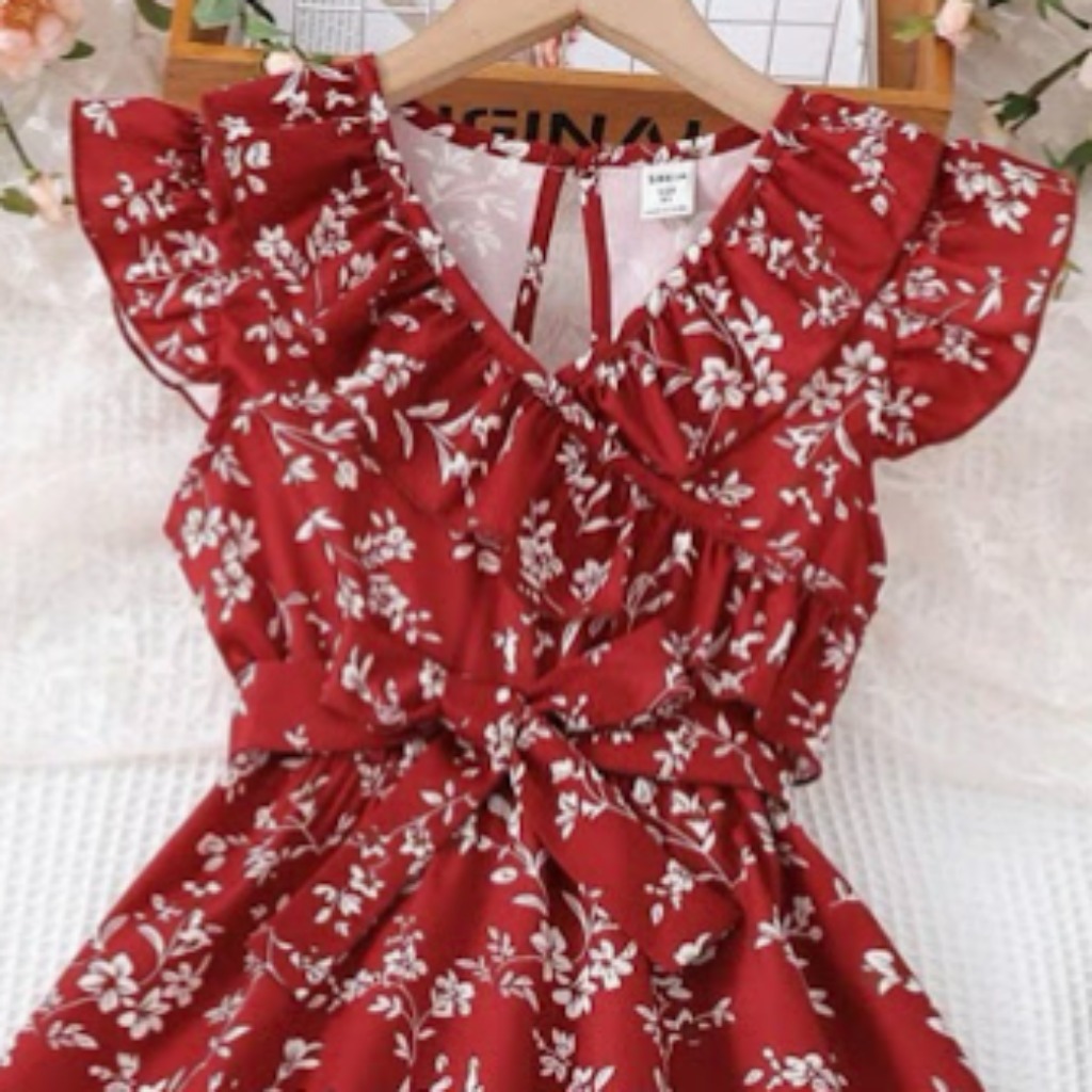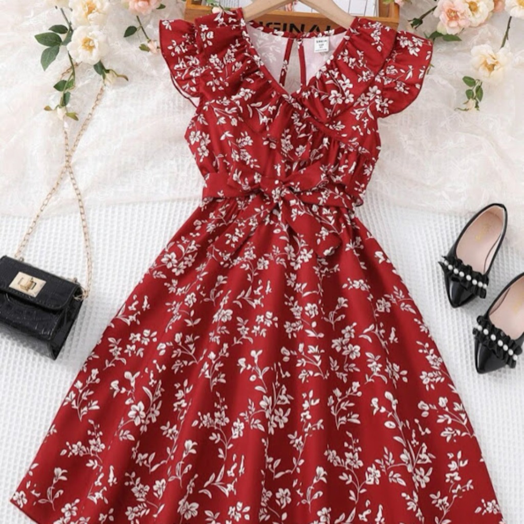 VESTIDO FLOREADO BORDO CON CINTO T 7 AÑOS