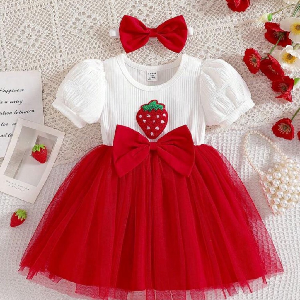 VESTIDO FRUTILLITA CON VINCHA T 6-9 MESES