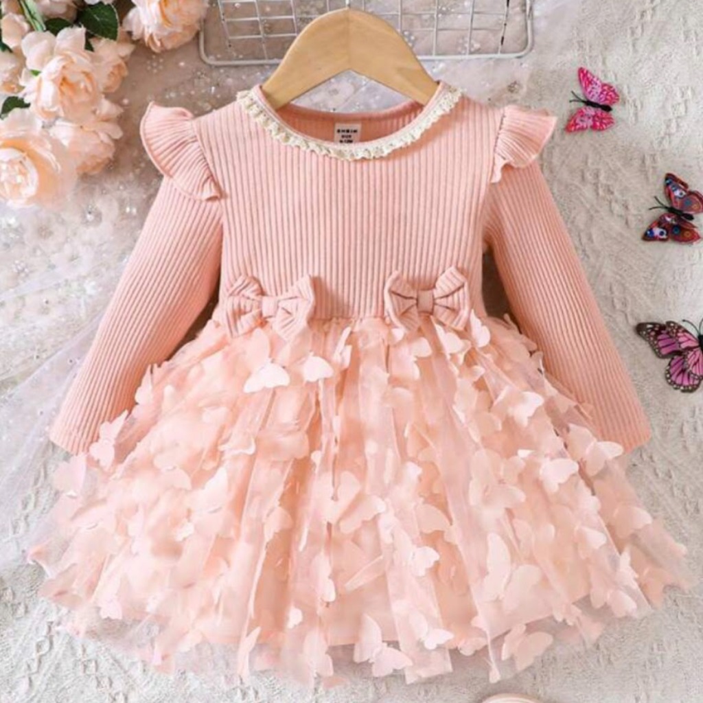 VESTIDO MANGA LARGA MARIPOSAS T 18-24 MESES