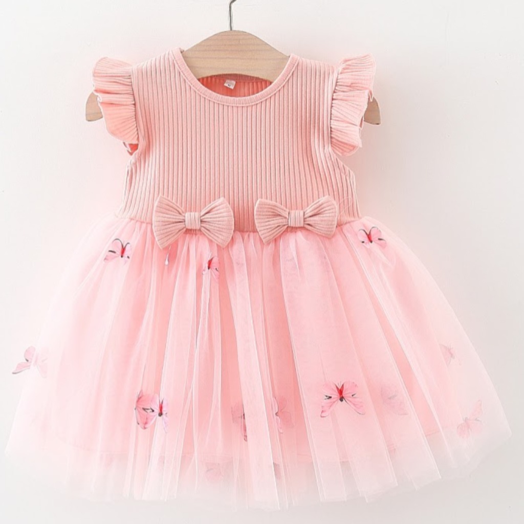 VESTIDO ROSA DETALLES MARIPOSA T 12-18 MESES
