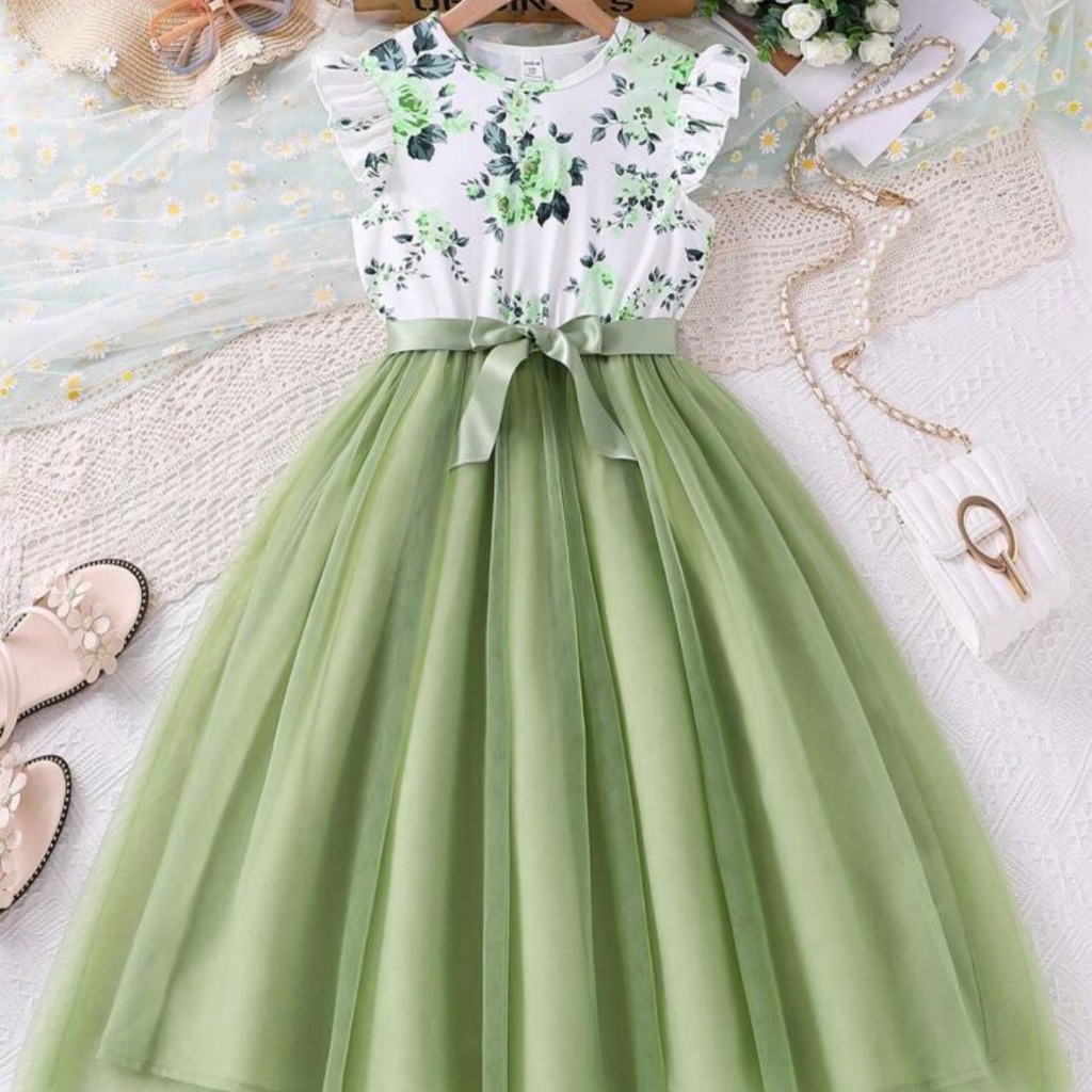 VESTIDO VERDE MENTA CON TUL T 10 AÑOS