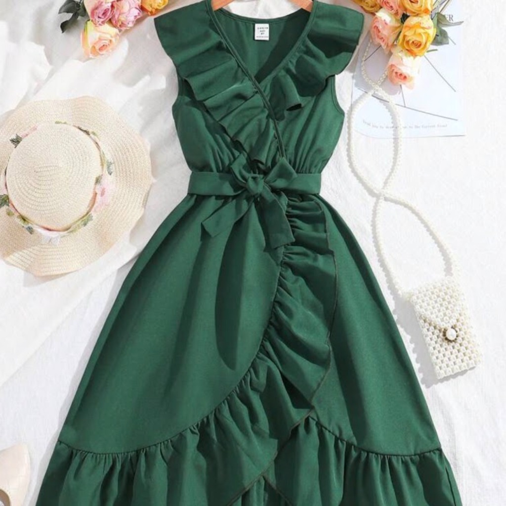 VESTIDO VERDE VOLADOS 8 AÑOS