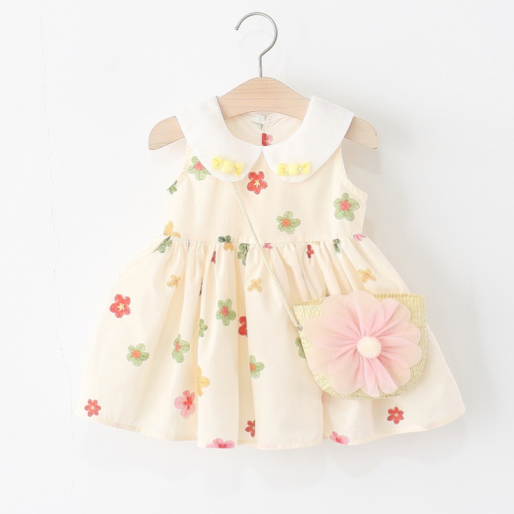 VESTIDOFLORES CON CARTERA T 6-9 MESES