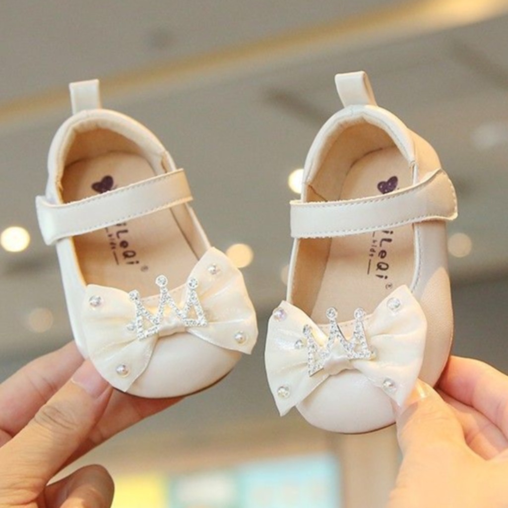 ZAPATITO CALADITO BEIGE DETALLE MOÑO Y CORONITA