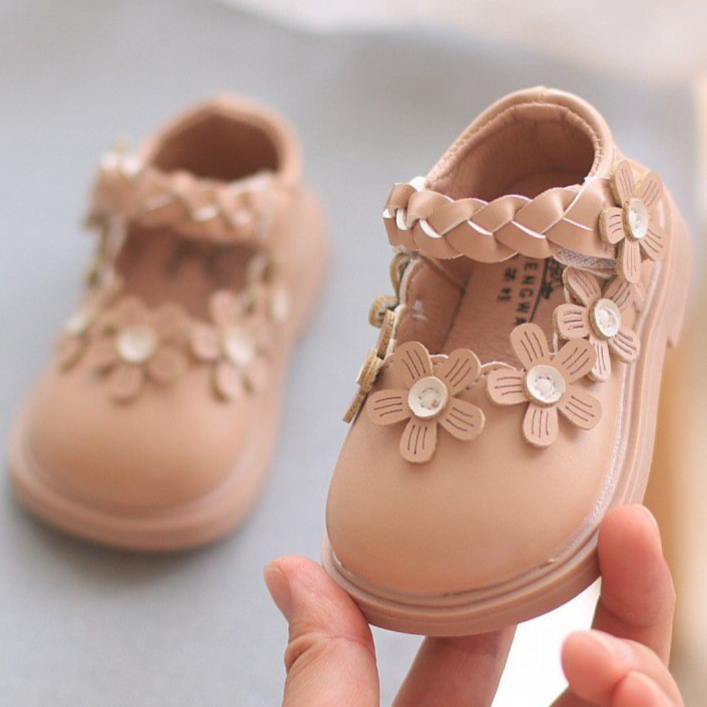 ZAPATITO MARRÓN CLARITO CON FLORES